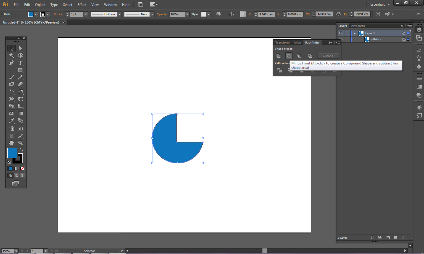 - Minus Front: memotong shape yang dibawah dengan shape atas