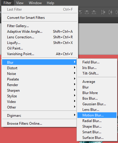 Langkah ketiga, pada layer 2, pilih menu filter, kemudian blur. Lalu, klik montion blur. Terus muncul kotak dialog motion blur pada gambar dibawah ini :